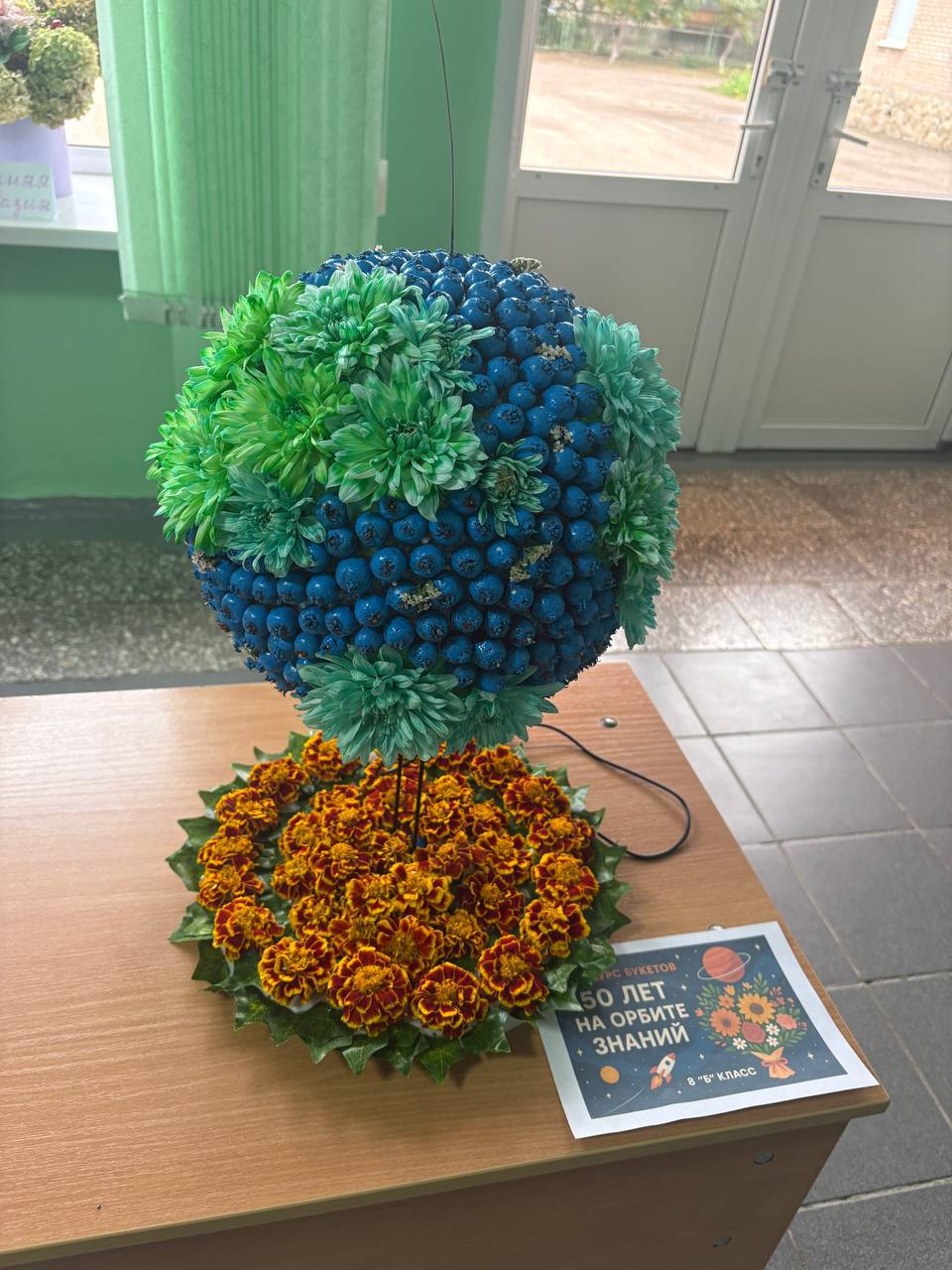 Этот букет будет представлен на конкурсе букетов, посвящённом 50-летию гимназии.