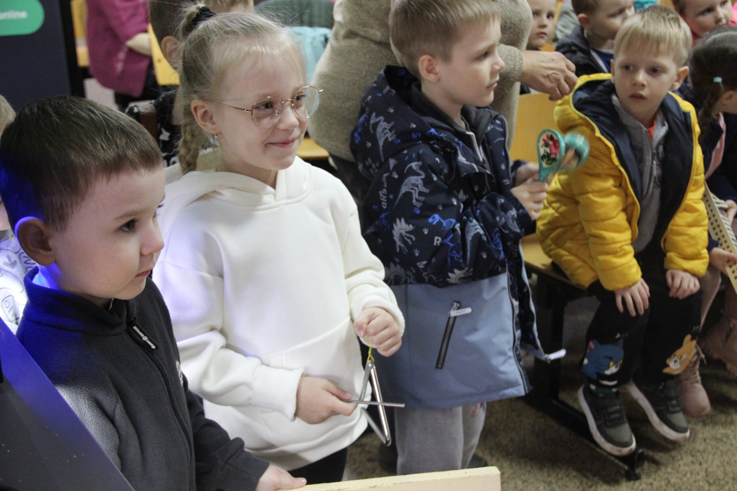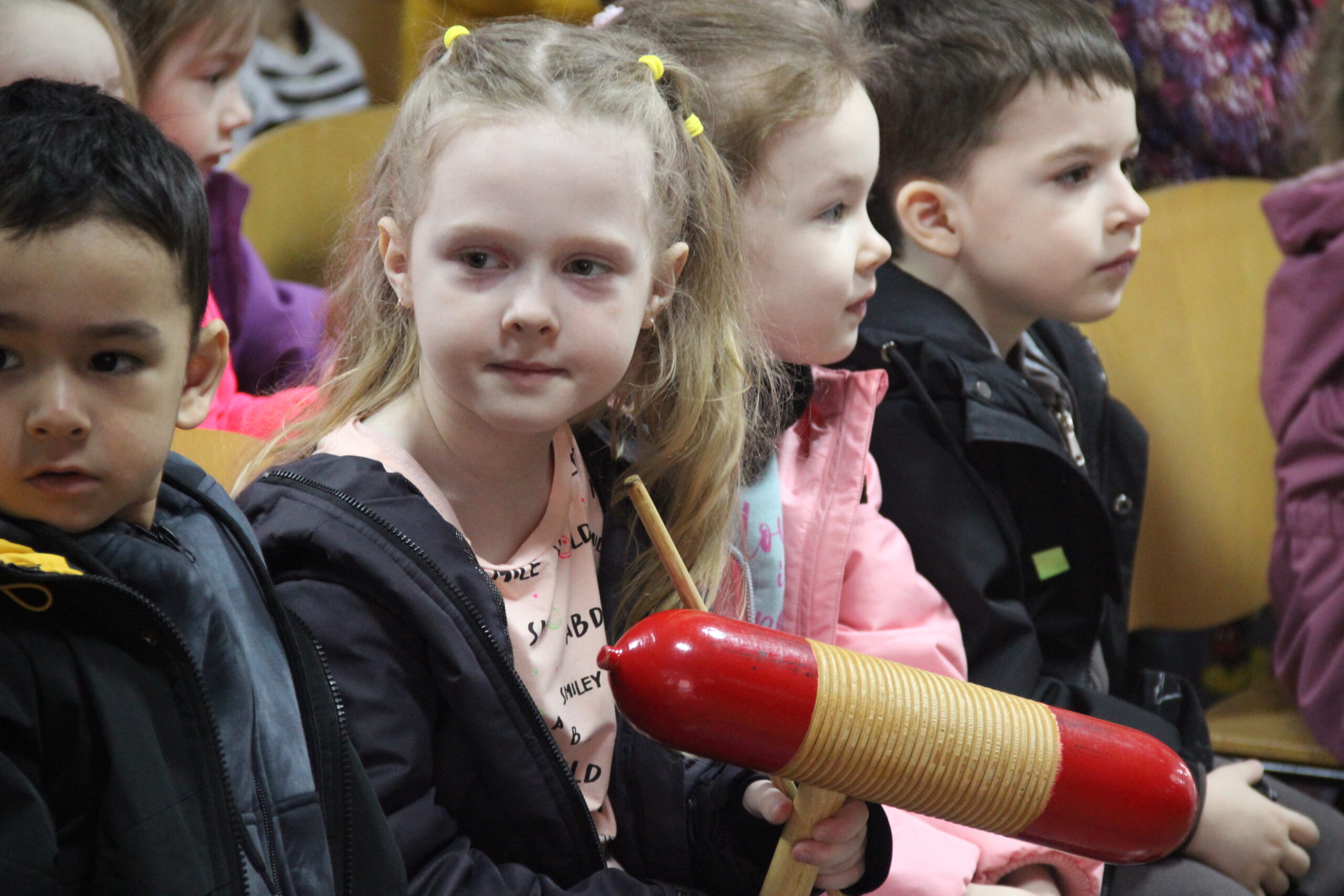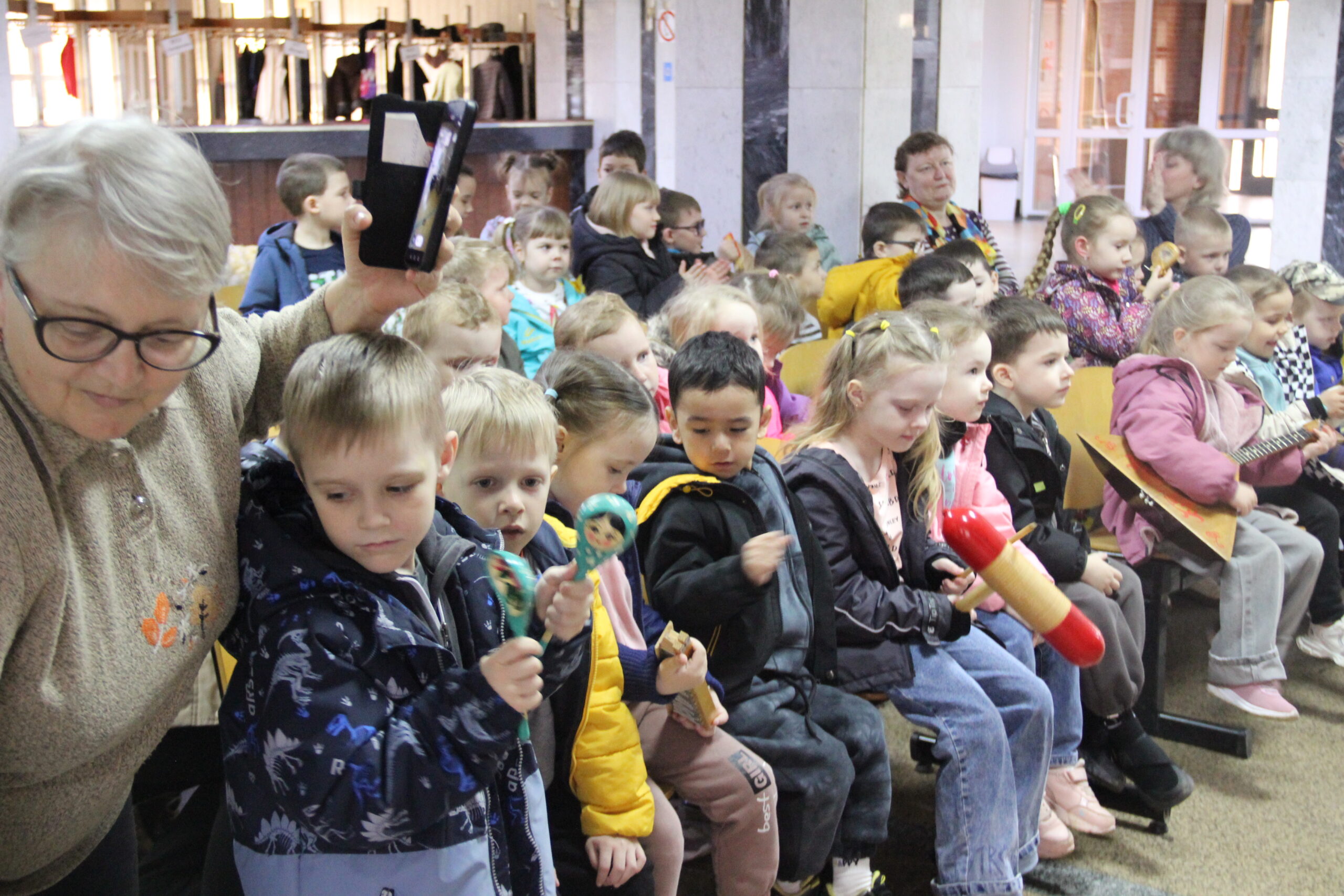 Ребята с энтузиазмом принимали участие в различных конкурсах: «Угадай мелодию», «Узнай героев мультфильмов». Так же воспитанники получили редкую возможность не просто услышать, а напрямую прикоснуться к живому звуку русских народных инструментов. Руководитель АНИ «Вольница» В.Е.Третьяков в доступной форме рассказал ребятам о самых популярных народных инструментах и предоставил возможность на них поиграть. В финале мероприятия звучали аплодисменты присутствующих- от душевного удовлетворения и радости!