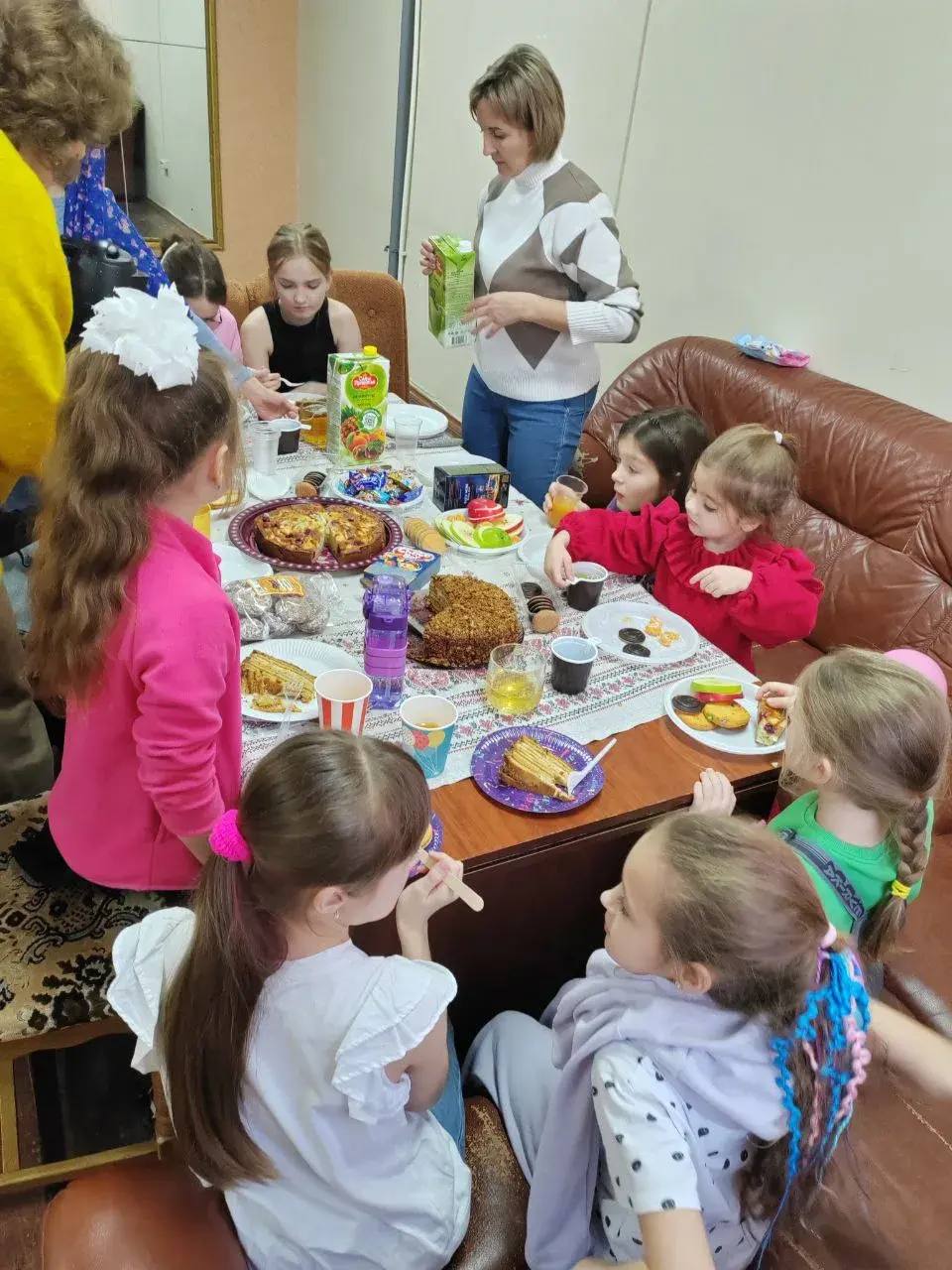 преподаватель воскресной школы Свято-Троицкого кафедрального Собора Бузулукской Епархии — Анна Владимировна Зотова рассказала детям об истории празднования Рождества Христова, познакомила детей с рождественскими притчами, провела викторину с детьми .